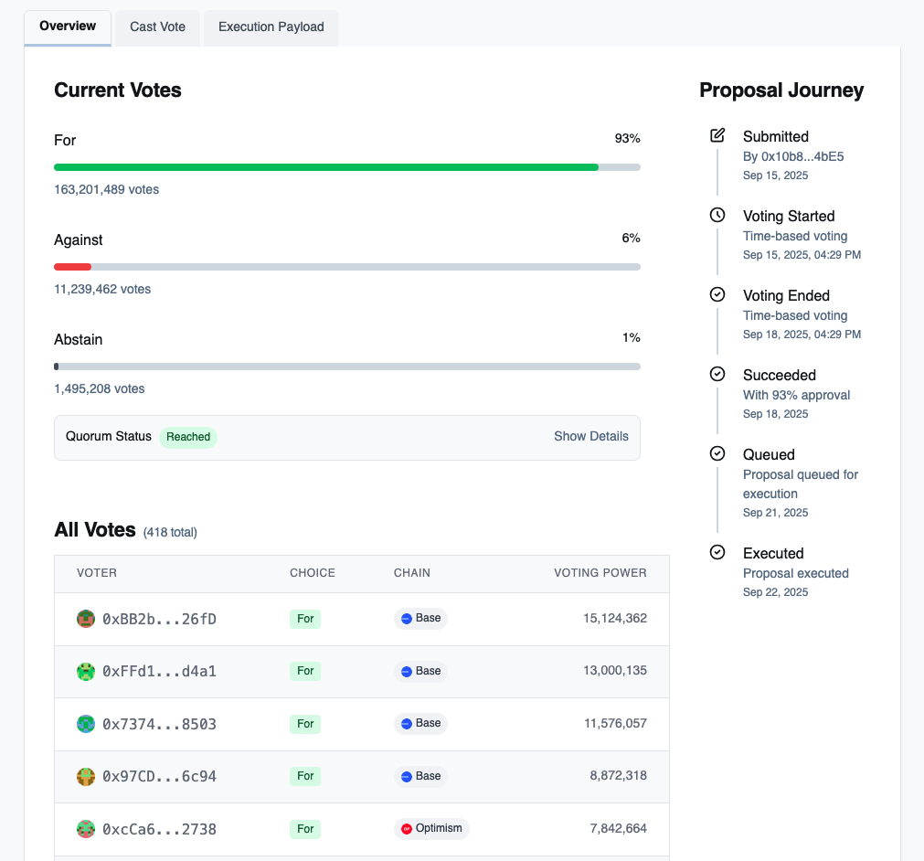 View every proposal with clear voting results, proposal details, and live vote stats.