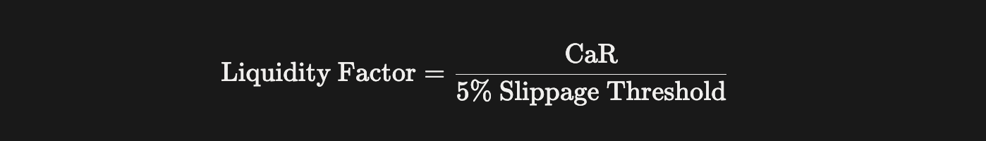 The liquidity factor for each asset is derived by comparing the Collateral-at-Risk (CaR) to the 5% slippage threshold:
