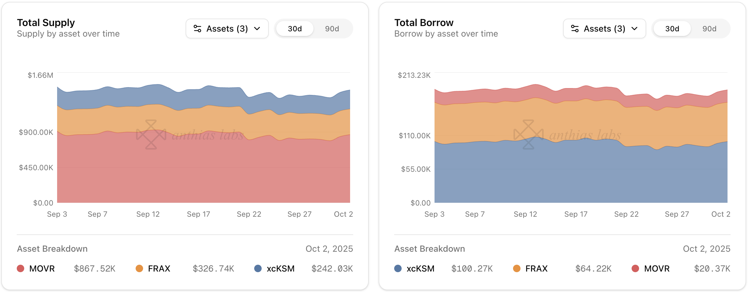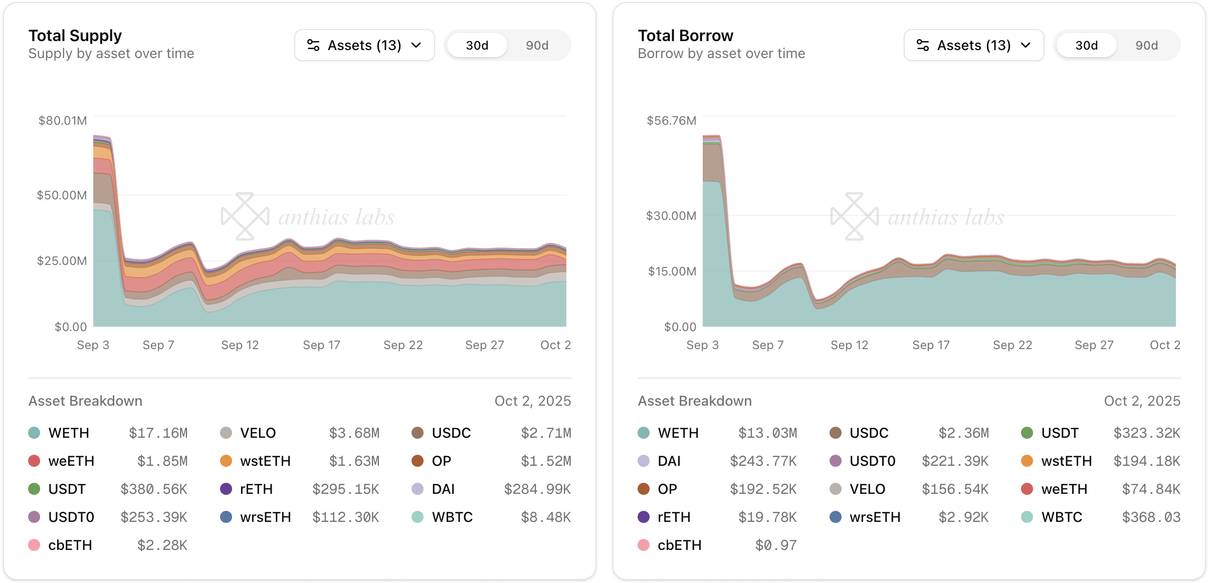 Anthias Labs would like to provide an update on market performance over the past week for Core markets on Base, OP mainnet, Moonbeam, and Moonriver. Data from 9/26/25 to 10/2/25. More information can be found on our monitoring dashboard.
